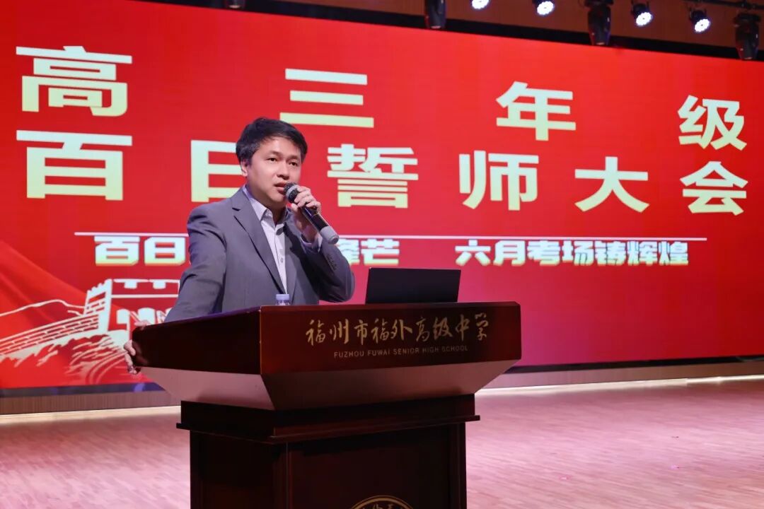 殷殷期许,催人奋进;铮铮誓言,激荡人心。面对整装待发的高三学子,陈卓副校长以“百日何惧风浪急,拼将热血写春秋”的豪情壮语深情勉励,深刻指出:高考不仅是学子们叩开未来之门、实现人生跨越的关键一跃,更是新时代青年回应时代召唤、投身民族复兴的庄严检阅。他殷切寄语全体同学,当以海纳百川的胸怀立大志、以大智大勇的气魄行大道,在最后百日的冲刺赛道上,以时不我待的紧迫感和舍我其谁的责任感,焚膏继晷,全力以赴,用汗水浇灌理想,用拼搏定义青春,以实际行动书写一份无愧于己、无愧于父母、无愧于这个伟大时代的青春答卷。
