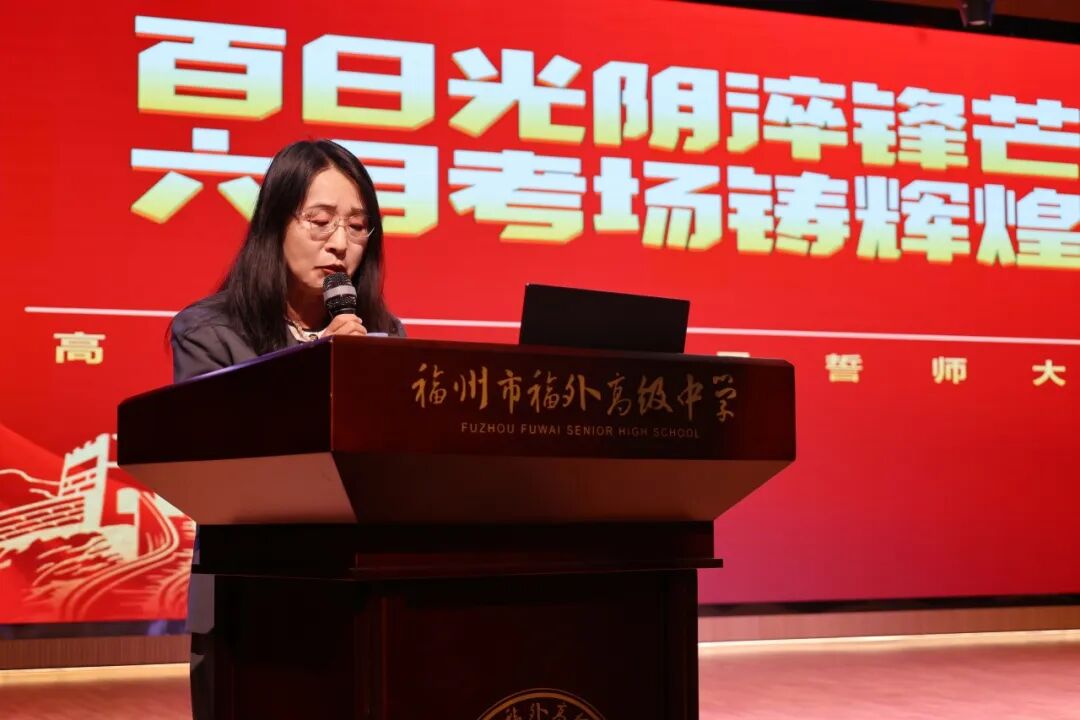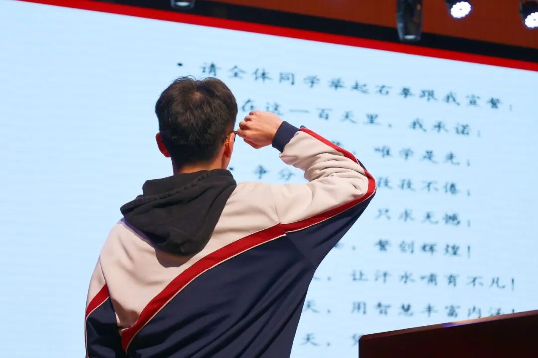 白英老师以“百日虽短,足可铸就奇迹”为引,表示最后一百天,是知识由薄到厚、再由厚到薄的整合期,更是心智由弱到强、由浮到沉的淬炼期。她温情寄语同学们:“请相信,你们不是孤军奋战。清晨的第一缕晨光,有老师在窗前守望;深夜的最后一盏灯火,有老师在案头相伴。我们愿做你们最坚实的后盾,与你们并肩执笔,共赴山海!”她的话语,点燃了全场学子的斗志。