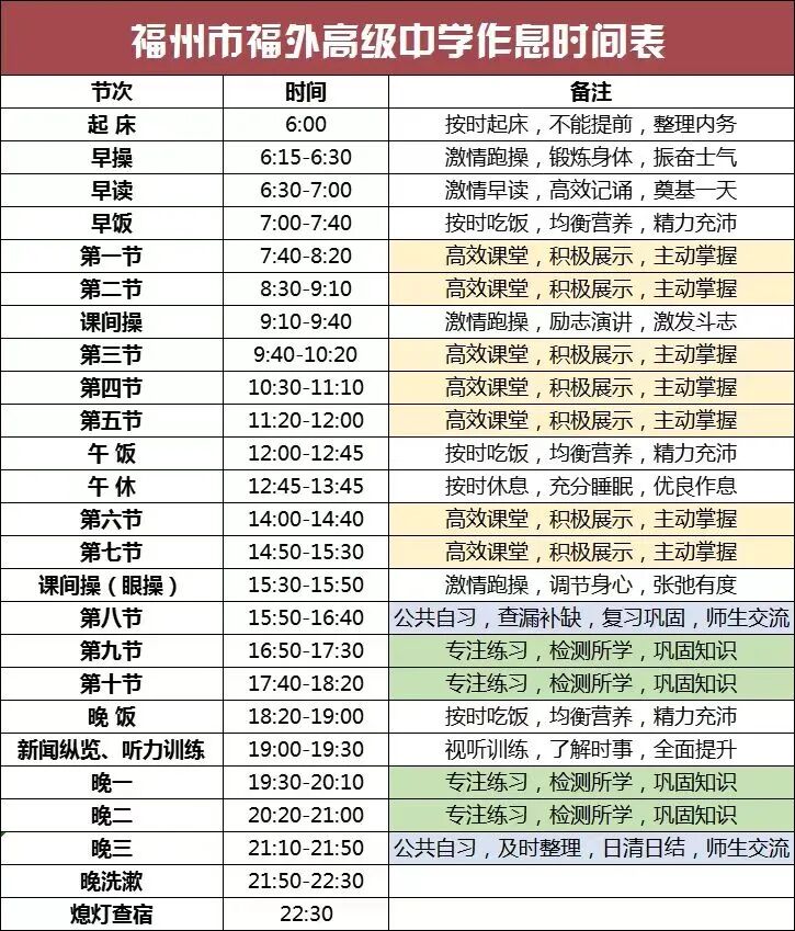 福外高中严格执行午休和晚休时间