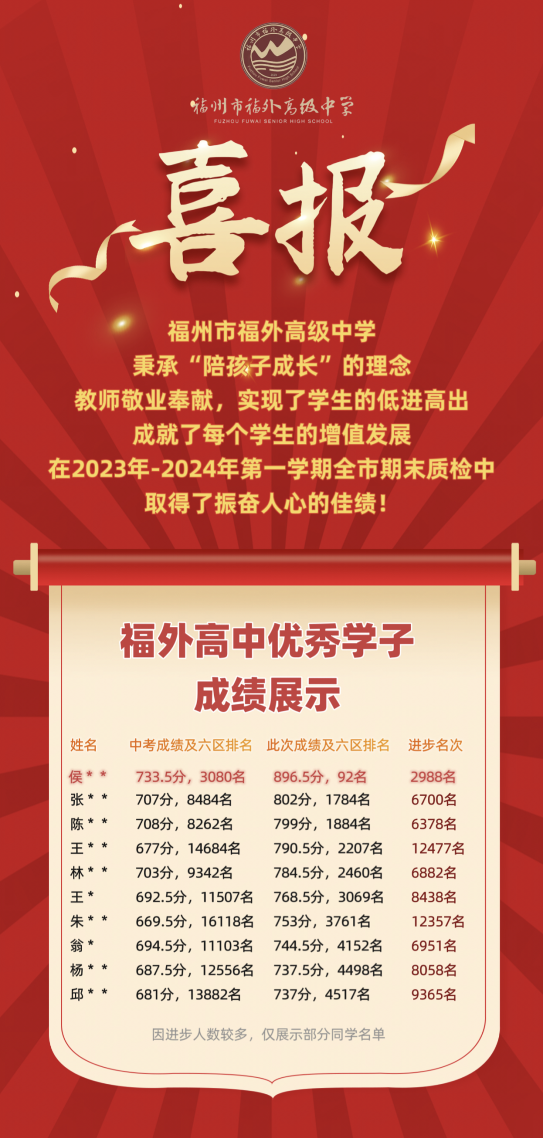 福外高中从中考入口的88名飞升至68名!